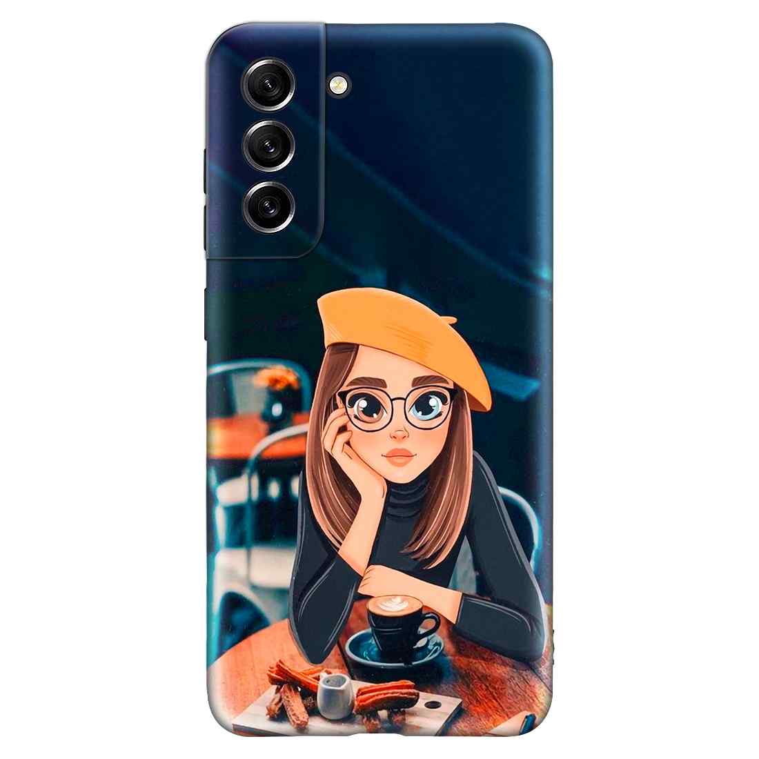 Cute Coffe Lover Girl Samsung S21 FE (5G) Premium Embossed Mobile cover
